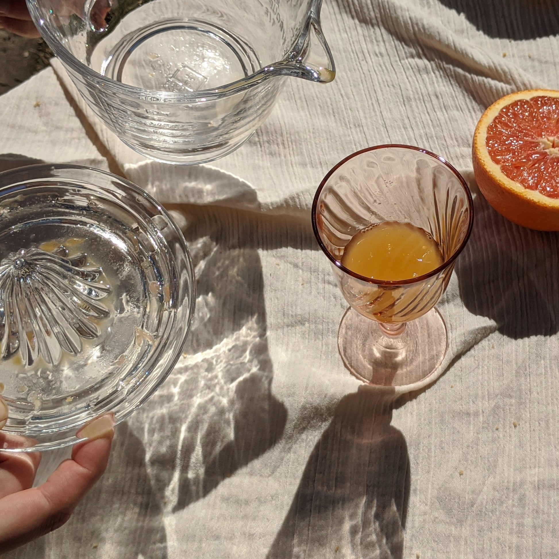 A dining table classic, simple and functional. Bringing aesthetics back to the everyday items. Every last drop of juice squeezed easily on the ridged glass juicer and conveniently straight into it's partnering glass measuring jug ready for pouring.